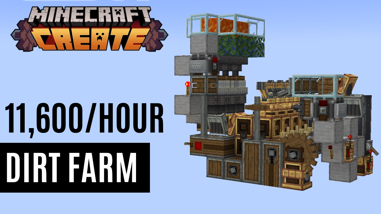 Fulfill your terrainforming needs! This new dirt farm introduce some advanced Create Mod techniques, which allows you to farm 11600 Dirt every hour!