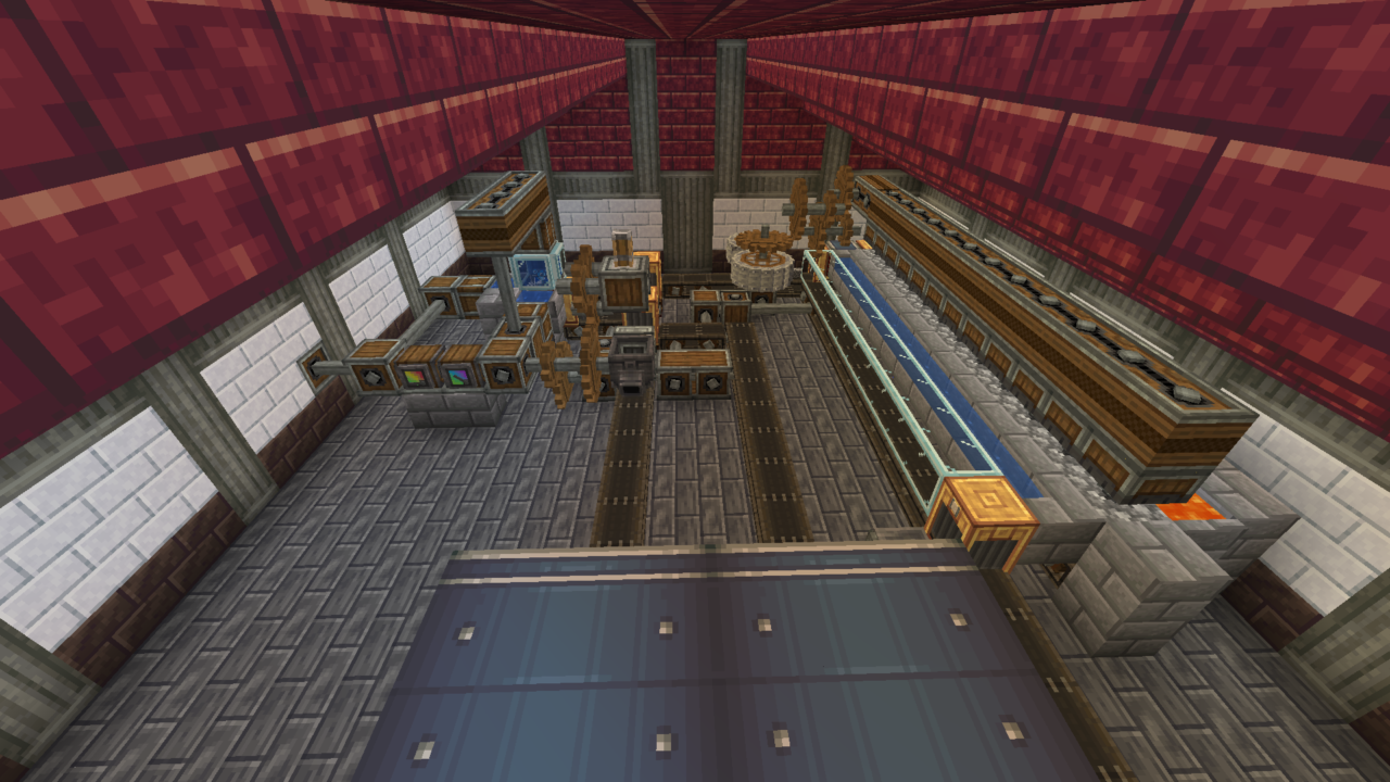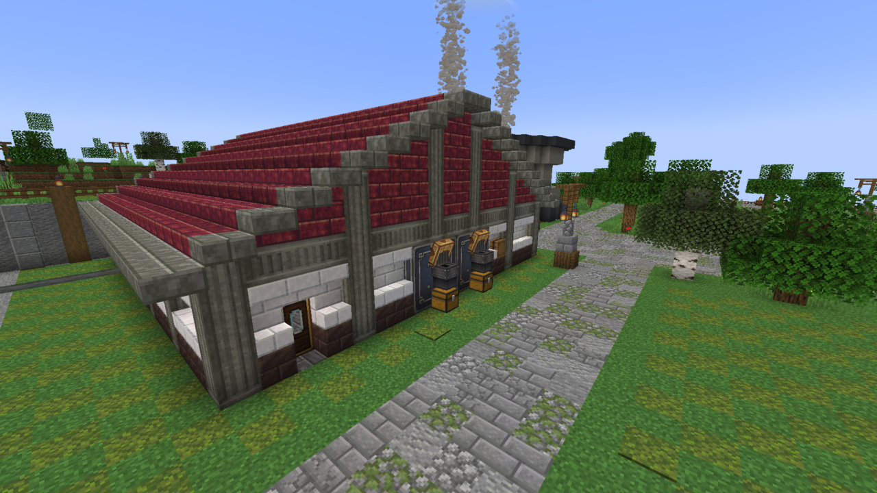 A slow iron farm. It is probably worth it to look at other people's designs, but this iron farm allows you to add Tuff or Crimsite into its queue and get iron from that, and idly create iron from gravel. Also, going to be honest, I'm not too fond of the blocks I used to make the building, but as I am in a time crunch today I don't have time to change them. Feel free to change the blocks or building surrounding the iron farm if you use it, but I know there are more efficient and more compact ones out there.