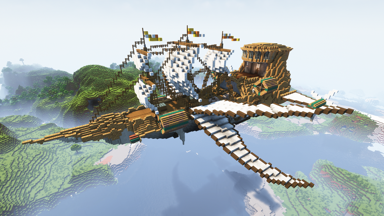 This was an Airship from one of my sponsored videos. I hired a builder called Migz on Fiverr to build this using only the base Create mod.
