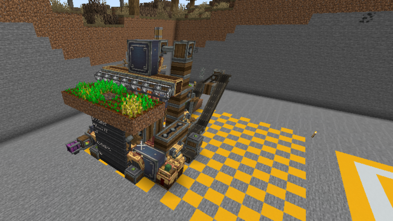 this is a dual purpose farm i decided to make it will probably be a bit slow at the start but it does work, you will have to turn it on after making it since to make the schematic i turned on the clutch next to the left item vault, you will also need to power the blaze burner atleast once to kick it on but once you get enough biomass pellets it should turn off the funnel and kick it into making normal biomass and when it gets too low on pellets it should start making pellets again