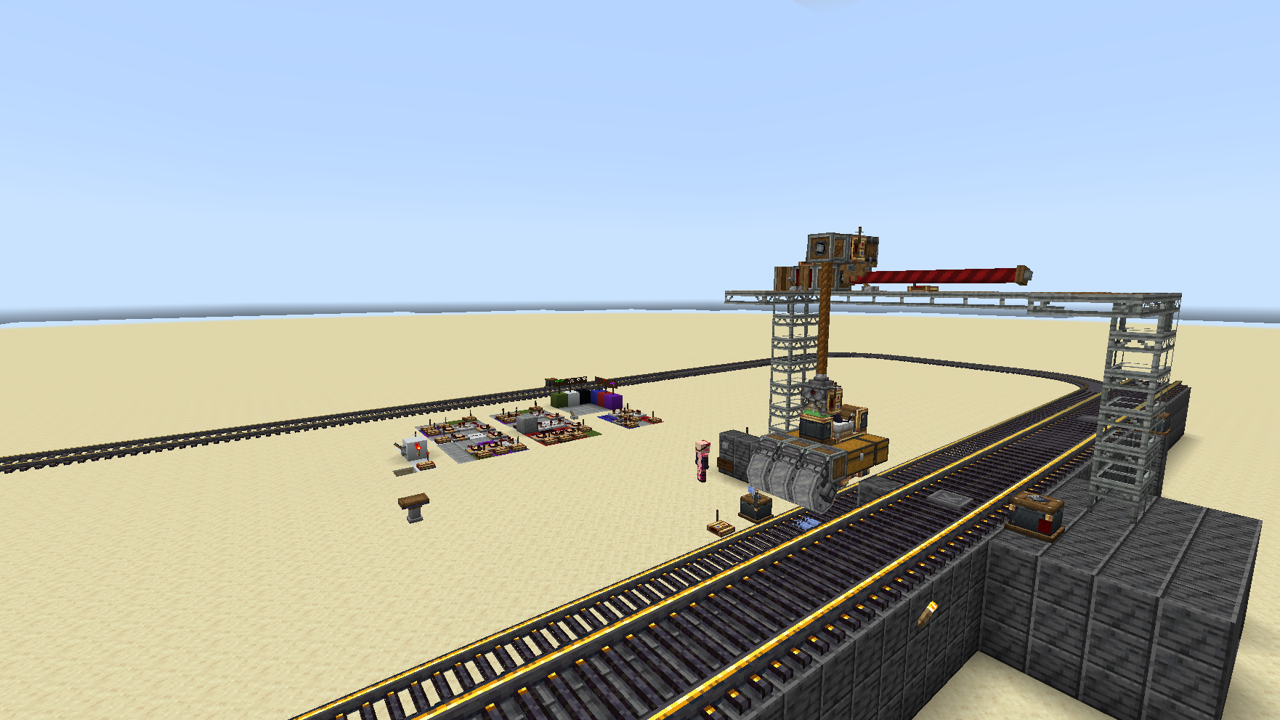 This is a system that is able to first of all disassemble a train, then lift it up and move it to a different track, before reassembling it. This schematic includes two parts, the crane itself, and the Redstone control circuit. While you can use the gantry crane schematic, it is recommended that you instead build it to fit your situation. Basic changes are as such, changing the height should require adjustments to the Blue, red and purple circuits. Increasing the timing for all of these. Changes to the width should change the gantry settings, which is the black and white concrete sections in the timings.