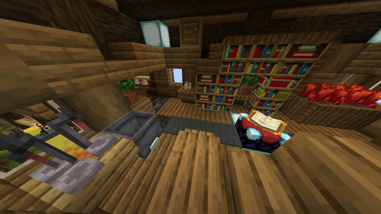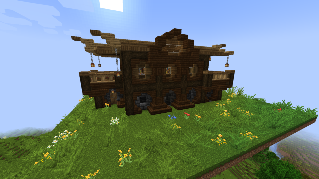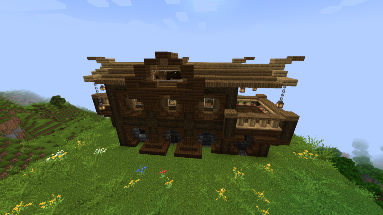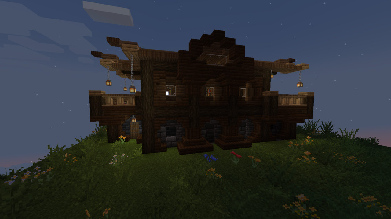 This mansion is made by using 2 tutorials, changing them and making my own version of it. (Using vanilla only blocks.) (Minecraft: Large Medival House/Mansion Tutorial (how to build) by disruptive builds & Minecraft: Large Wooden Cabin Tutorial by Lex The Builder) This build uses snow to adjust height of armor stance to put helmet on crafting table. There are 2 small storages hidden behind 2 trapdors.