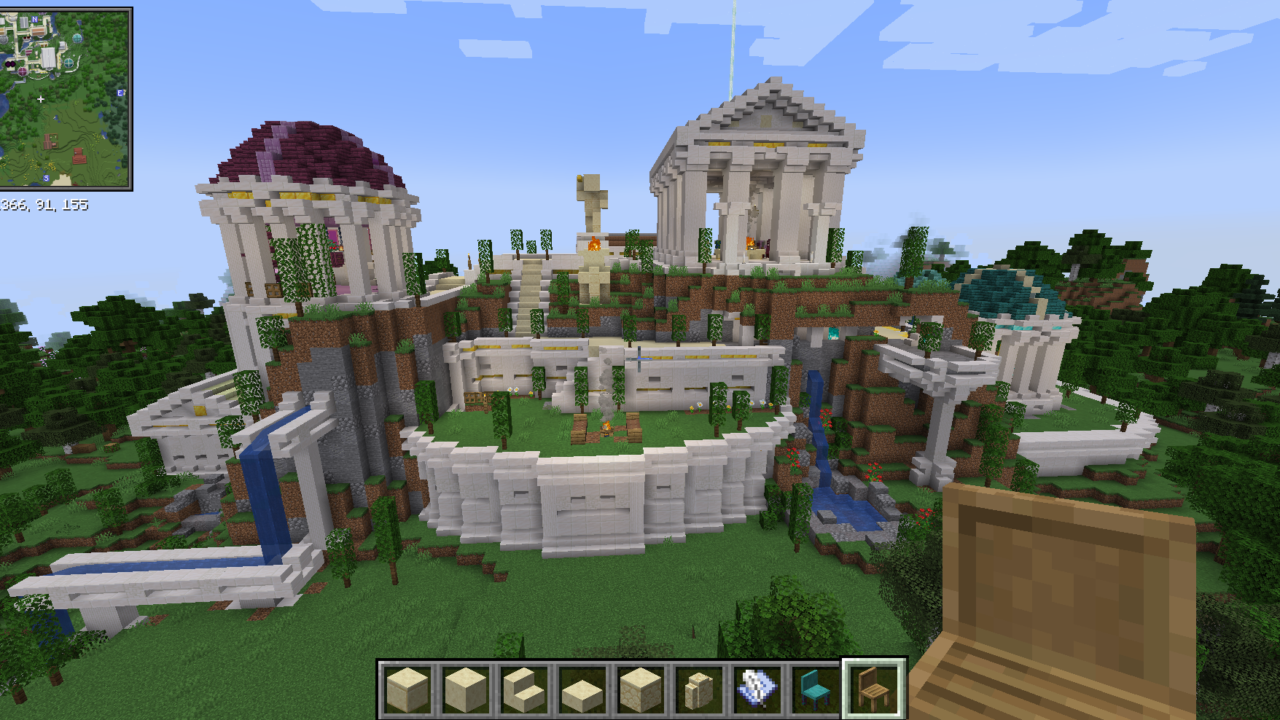 This is my version of Mt Olympus! The Mods required are Create, Create: Deco, Copycats, and both MrCrayfish Furniture mods for it to work. Works for version 1.20.1.