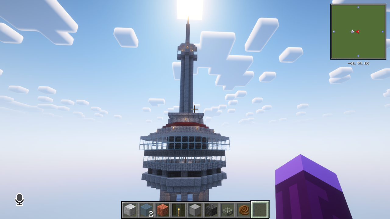 This is a western canada landmark of the CNTower think its recommended to have a jukebox with you when your schematic gets finished as this place is referencing where loons are since there isnt a loon implemented to minecraft use a jukebox in this build. Speaking of loons I find it dissapointing that mojang never upload that animal to minecraft. Having a animal like that couldve been useful imagine a scenario where your bed says "you cant sleep because monsters are nearby." At this time you use the animal you tamed and brought into the building with you any monsters outside your building would still be able to hear the loon as they sing a lullaby and if that very loon is on a crafted perch made for them and singing a lullaby anything within the radius will have a sleep status. Making monsters immobile meanwhile you get drowsy and a slowness effect is put into your status once you get to your bed everything will be back to normal. Monsters will burn under sunlight as usual and your safe. Loons are an iconic animal for asmr and it be good to remember their value for sleep. Anyway the reason why I made this title is just to indicate the few things missing in this website even tags arent here so if your looking for something that goes by "western canada landmarks." Sadly you wont know if it has it or not. So I think none should be saying things about this website when you tell folks its made for adults it barely has a good navigation function as createmod.com So please dont make this a console war conversation scenario between websites.
