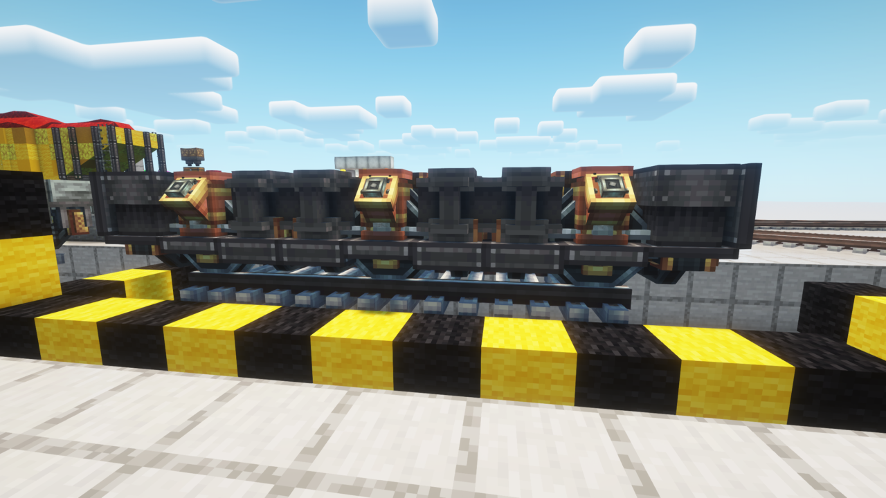 I tried building some diesel locomotives to the scale of the stock Create 4-wheel bogie but in the end, the format is too small in scale to the player as well as very limiting the lvl of detail I want to give it due to block scale. So I took a step back and decided to start with building a bogie that is a scaled more appropriately to the player. To do this, I ended up using three create bogies in the 2 wheel variant (the "steam train drivers") then built a suspension frame around that to mask the "steam" bits and give it more of a modern truck look.