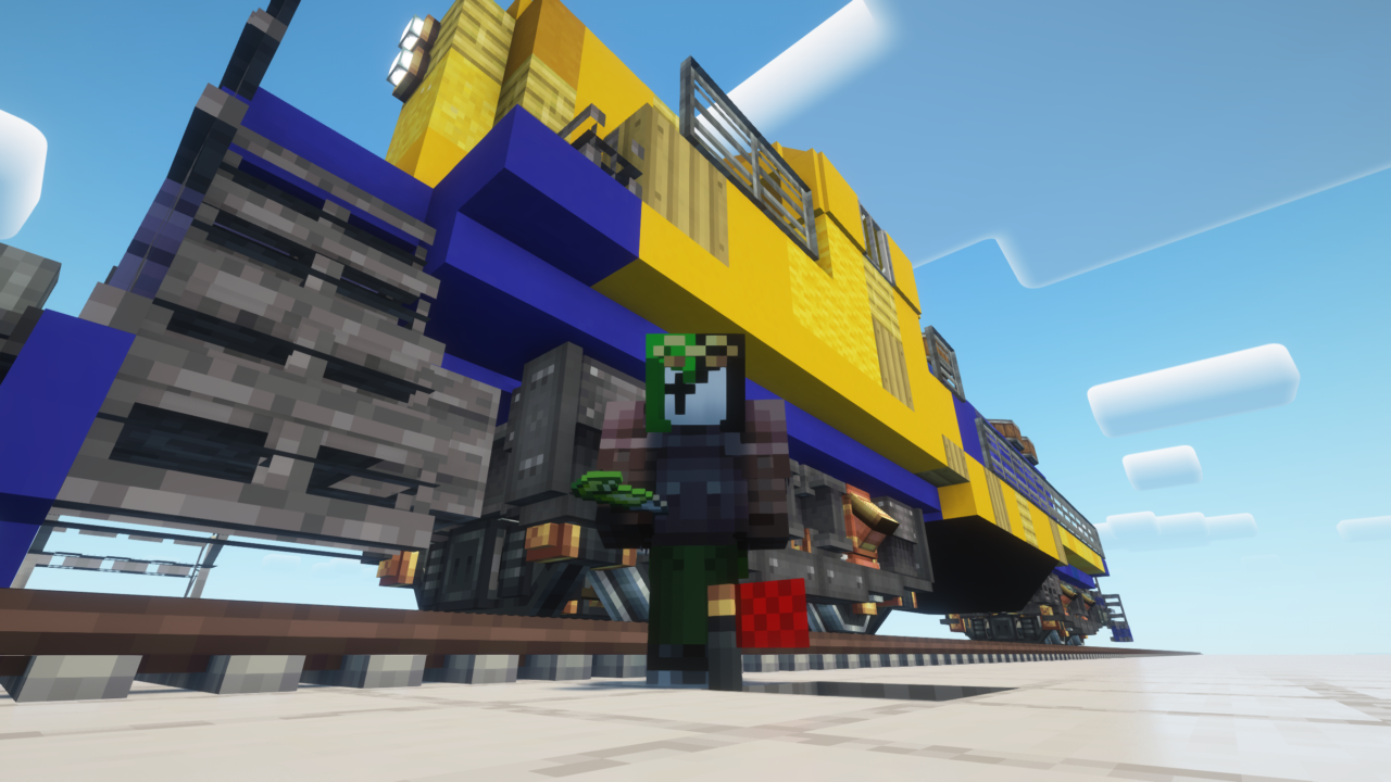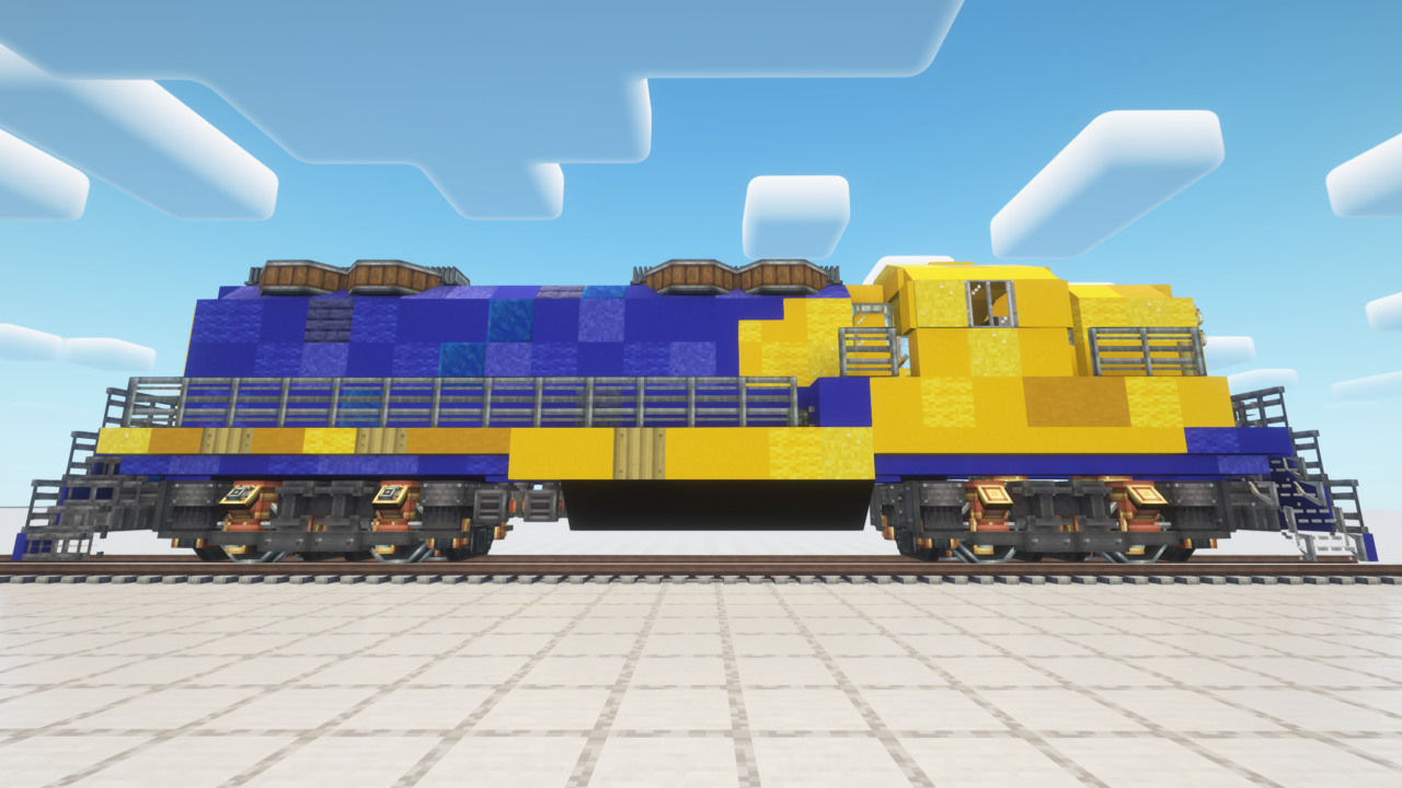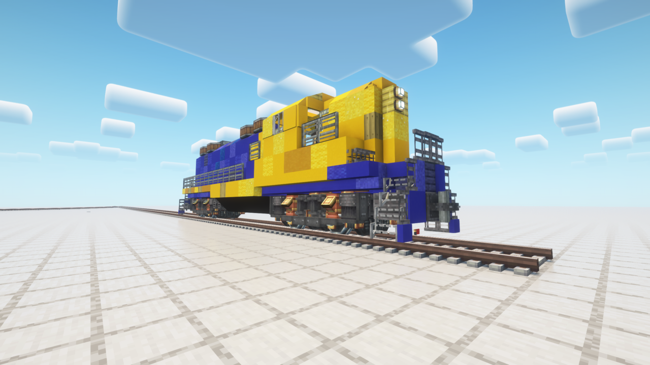 This is part of the "Realistic Scale" series. This is a EMD GP-9 diesel-electric locomotive, in the Santa Fe blue and yellow livery which was a iconic (for me) service locomotive that I had as a kid on my HO scale set. This is the first full build element I have done as part of my Realistic Scale series. MODS: Core mods: Create 6 Create Copy Cat Create deco Other mods: Mr. Crayfish furniture mod refurbished