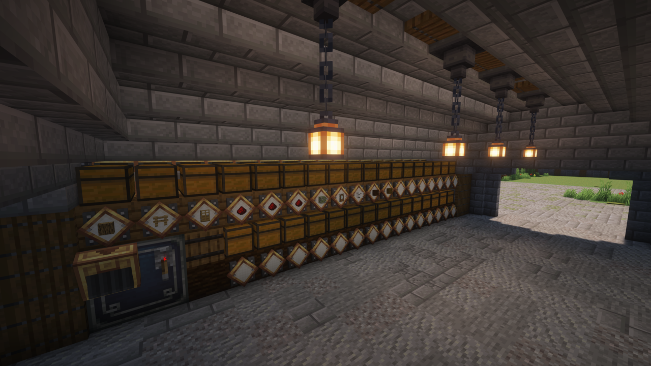 This is a storage system that uses a lot of brass funnels and belts to sort items along with chests for storage. Everything is powered using a single water wheel.