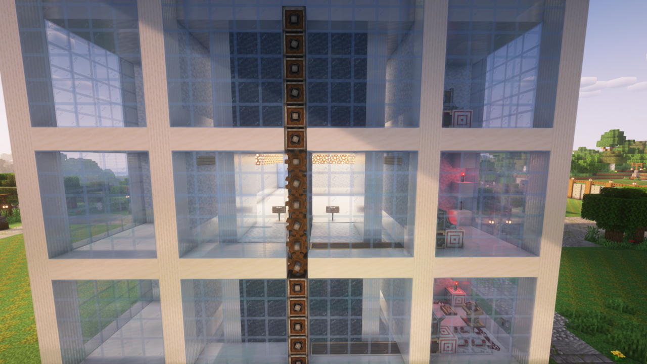 4. Go to the back an ensure the elevator looks like a text cursor (thin in the middle, thick at the top and bottom) You can change the orientation by flicking the levers above the target blocks.