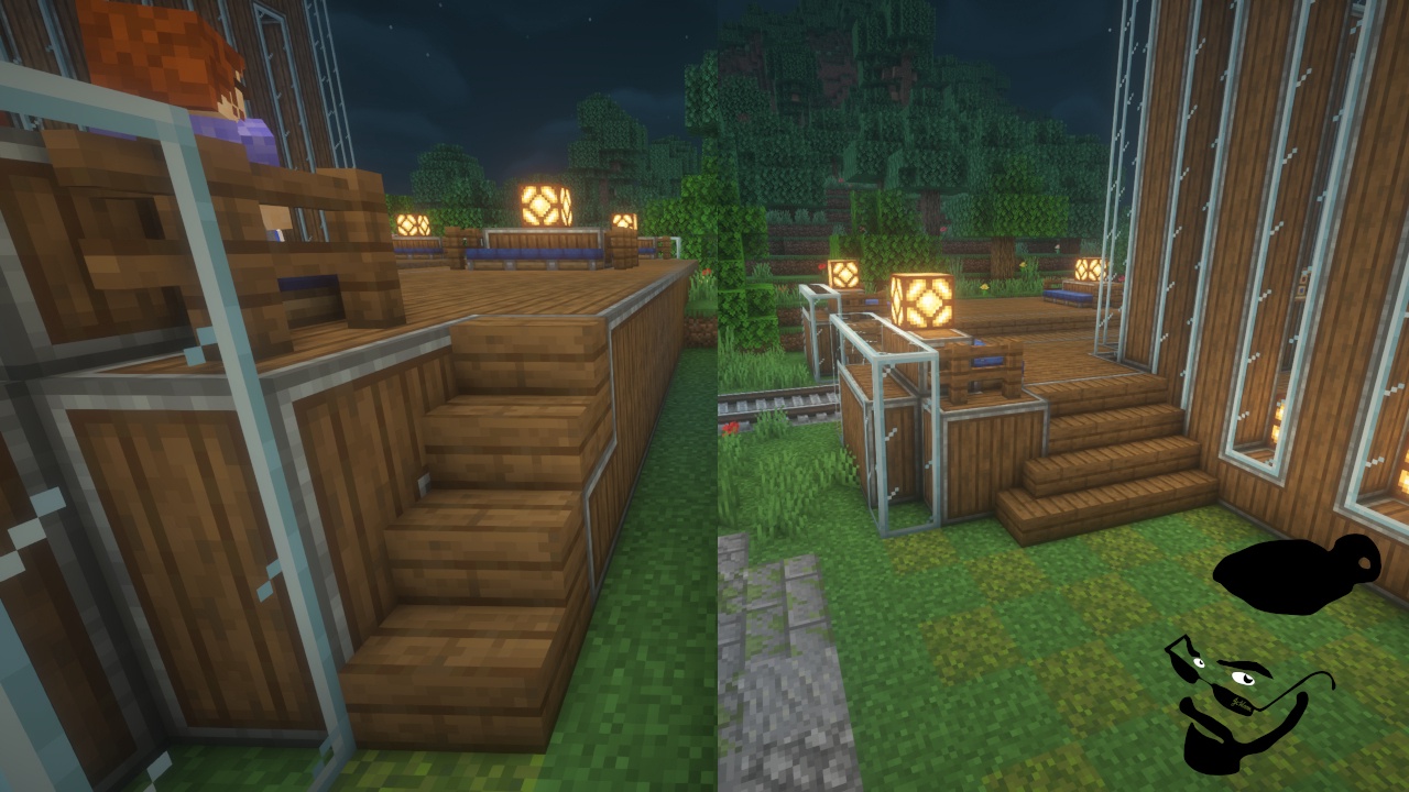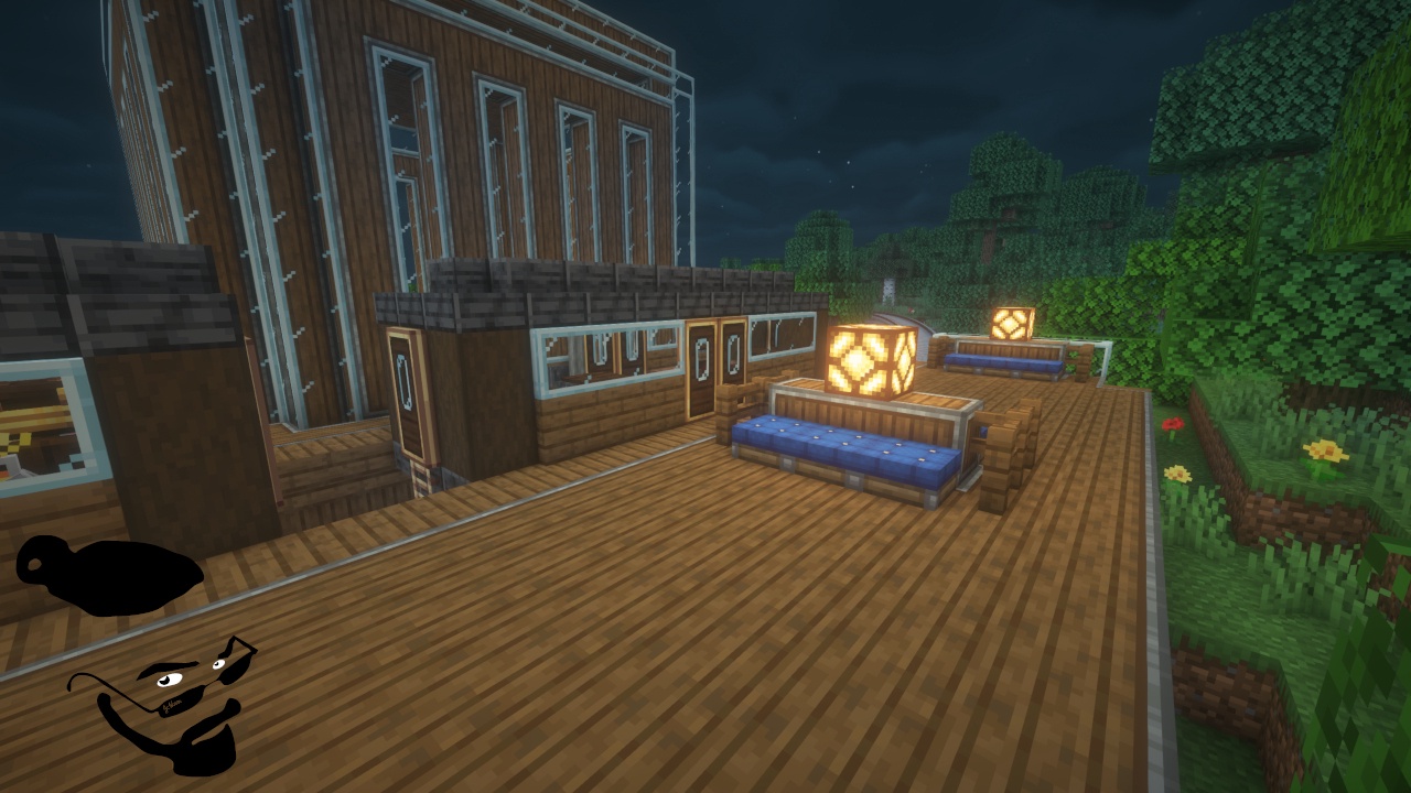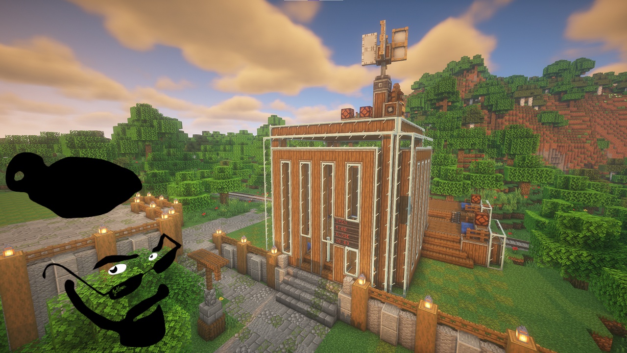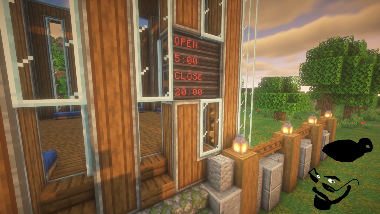 My Trainstation for the Uberswe 30 day challenge. It is built in the JcWnnr '23 to '24 style. It comes with automatic doors that open and close as the sun comes up and goes down as well as automatic lights. There are alternate ways to get to the tracks when the station is closed. There is also a perfectly integrated sign that has all shafts and gears hidden. You can have it say whatever you like! Enjoy!
