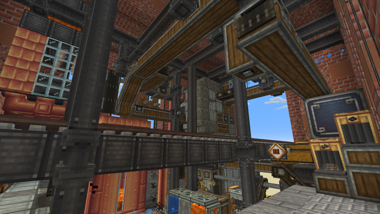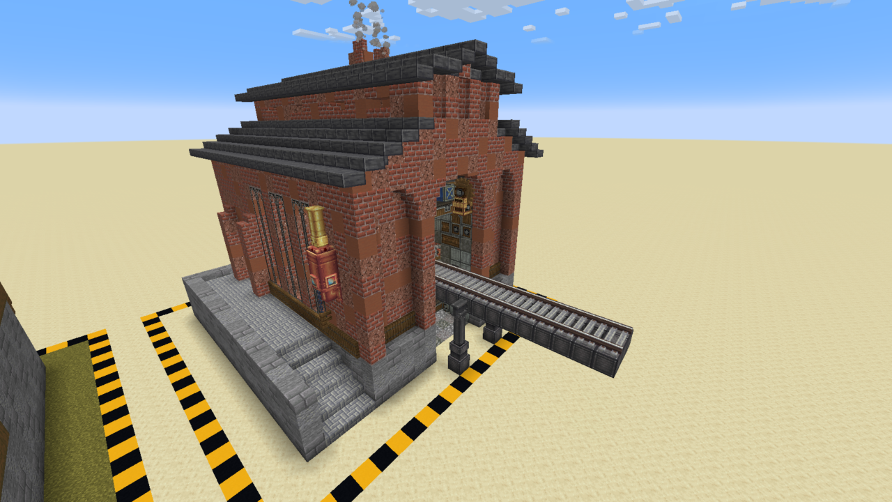 This is a 35x35 Tainfactory that can produce train tracks and sturdy sheets. the train-tracks are completely automated but the sturdy sheets aren't, u need to put magma blocks in a chest made fir them because its not possible to automate magma blocks with create BUT if you downloaded an addon for that u can still hook up your 2 farms thanks to the train track going thru the factory. Those traintracks going thru can be used for a lot of thingy like just using it as a station or use it to deposit materials and take materials at the farm with automated trains (highly recommend that). I also tryed to make the inside look good. so enjoy :D